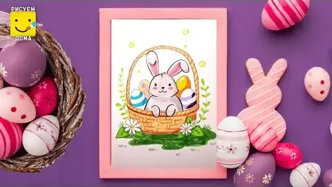 Рисунок на Пасху / Рисуем ПАСХАЛЬНОГО ЗАЙЧИКА / Рисуем дома