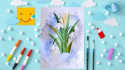Как нарисовать ПОДСНЕЖНИКИ / Уроки рисования акварелью для детей/ Рисунок на тему Весна
