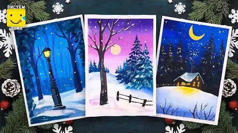 ЗИМНИЕ ПЕЙЗАЖИ гуашью/ Как нарисовать ЗИМУ/ Мастер класс по рисованию/ для детей, для начинающих