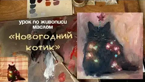 Урок по живописи маслом «Новогодний КОТИК»🐱/ мастер класс по маслу для новичков