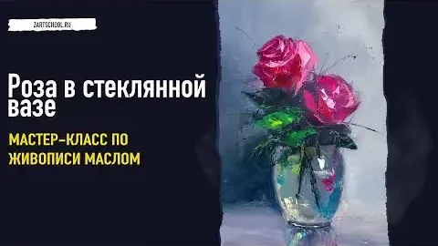 Роза в стеклянной вазе – пошаговый урок по живописи маслом.